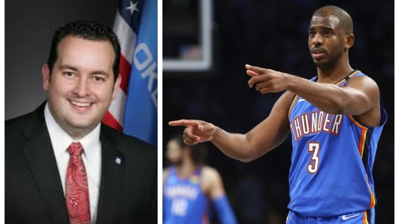 'ถ้าผู้นำ โอคลาโฮม่า ซิตี้ ธันเดอร์ และผู้เล่นติดตามเทรนด์ปัจจุบันของเอ็นบีเอด้วยการคุกเข่าระหว่างเพลงชาติก่อนเกมวันเสาร์ บางทีเราจำเป็นจะต้องตรวจสอบสิทธิประโยชน์ทางภาษีที่รัฐโอคลาโฮม่ามอบให้องค์กร โอคลาโฮม่า ซิตี้ ธันเดอร์ ตอนที่พวกเขามาที่ โอคลาโฮม่า' โรเบิร์ตส์ กล่าวในแถลงการณ์
