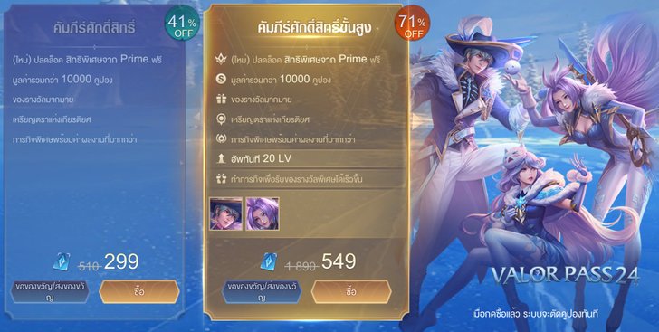 สวัสดีครับเพื่อนๆชาว RoV ที่น่ารักทุกคนก็จบกันไปแล้วนะครับกับ Valor Pass บทที่ 23 ตำนานแห่งแสงจันทร์ จากแสงจันทร์สู่เดือนแห่งฤดูหนาวธันวาคม ใครที่ชอบความคุ้มพลาดไม่ได้ด้วยประการทั้งปวงกับ Valor Pass บทที่ 24 เสียงขับขานแห่งฤดูหนาว ASIAXX3 ที่บอกได้เลยว่างดงามสมการรอคอยแน่นอน จริงๆแล้วมันเป็นอะไรที่น่าเติมที่สุดใน RoV อันหนึ่งเลยครับราคาสกินเอามาบวกกันแล้วก็หลายพันคูปอง แต่นี่เราสามารถครอบครองสกินหายากถึง 3 สกินไม่รวมสกินอื่นๆในราคา 299 คูปองไม่เรียกว่าคุ้มแล้วจะให้เรียกว่าอะไรเนอะ เมื่อรู้แบบนี้แล้วก็อย่ารอช้าไปดูกันเลย